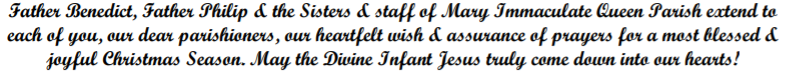 We are always happy to see new faces at Mary Immaculate Queen Church and we look forward to seeing you again.