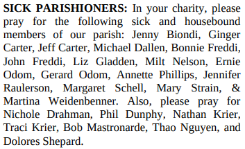 SICK PARISHIONERS: