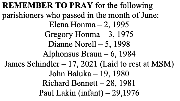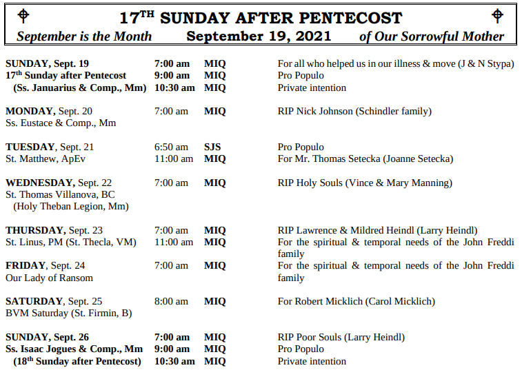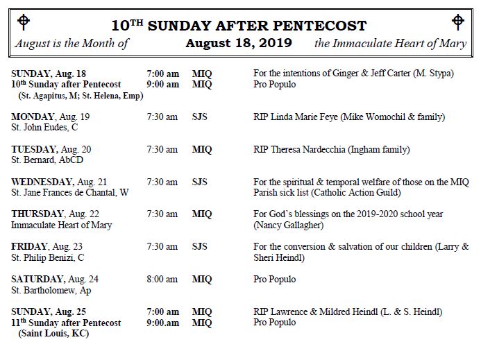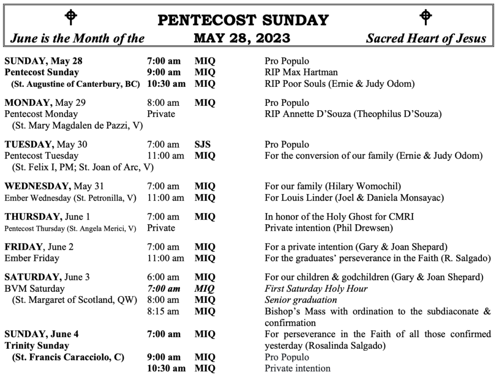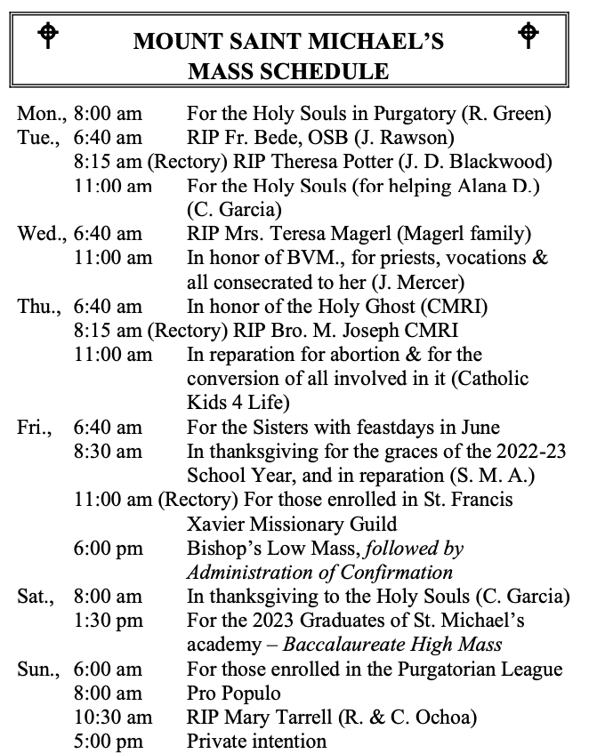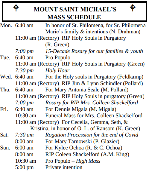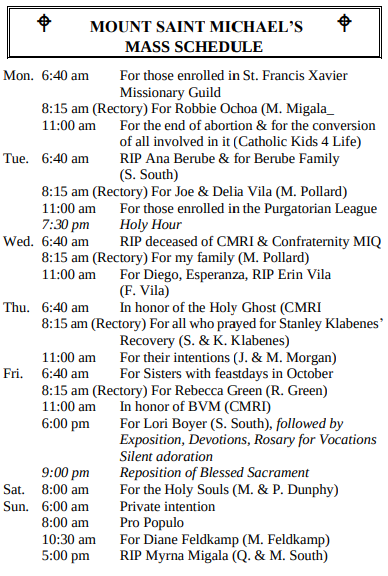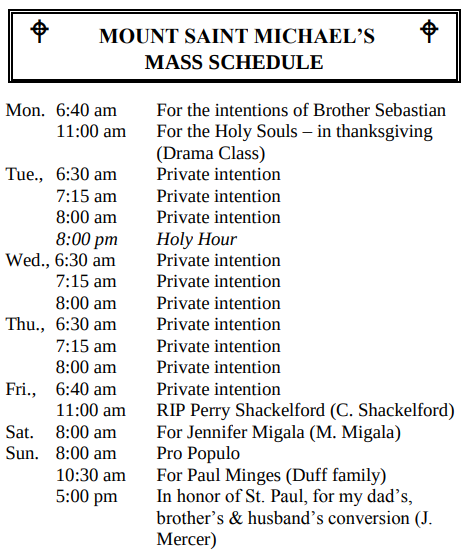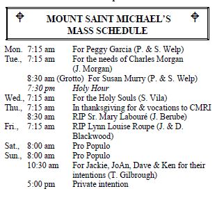 MOUNT SAINT MICHAEL’S MASS SCHEDULE