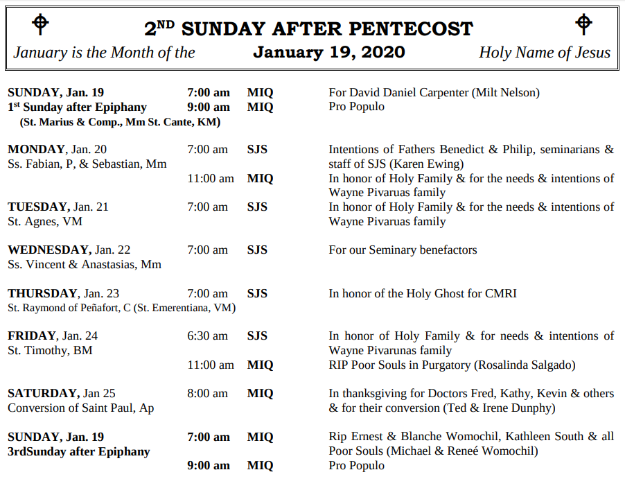 MASSES THIS WEEK