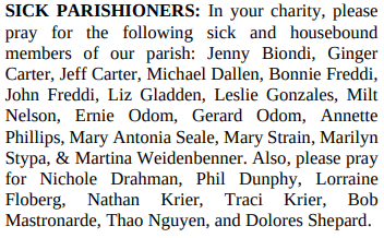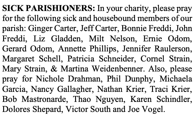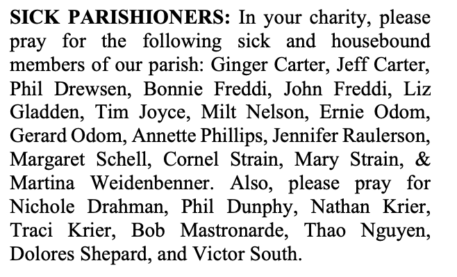 SICK PARISHIONERS
