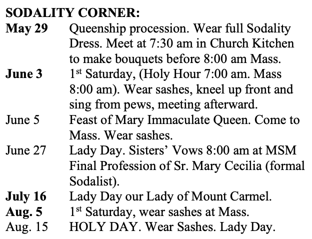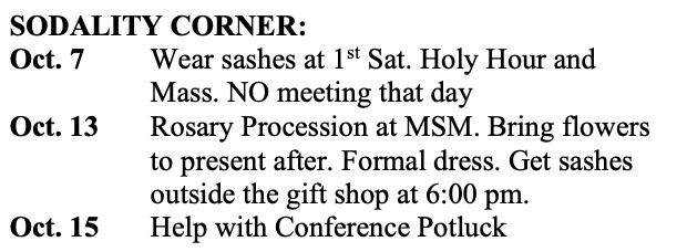 SODALITY CORNER