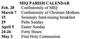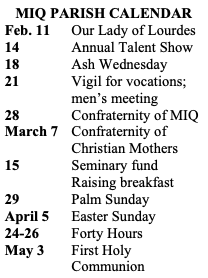 We are always happy to see new faces at Mary Immaculate Queen Church and we look forward to seeing you again.