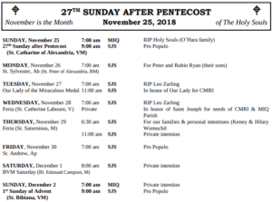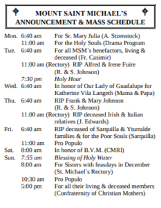 MASSES THIS WEEK: