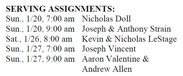 Bulletin for January 20, 2019