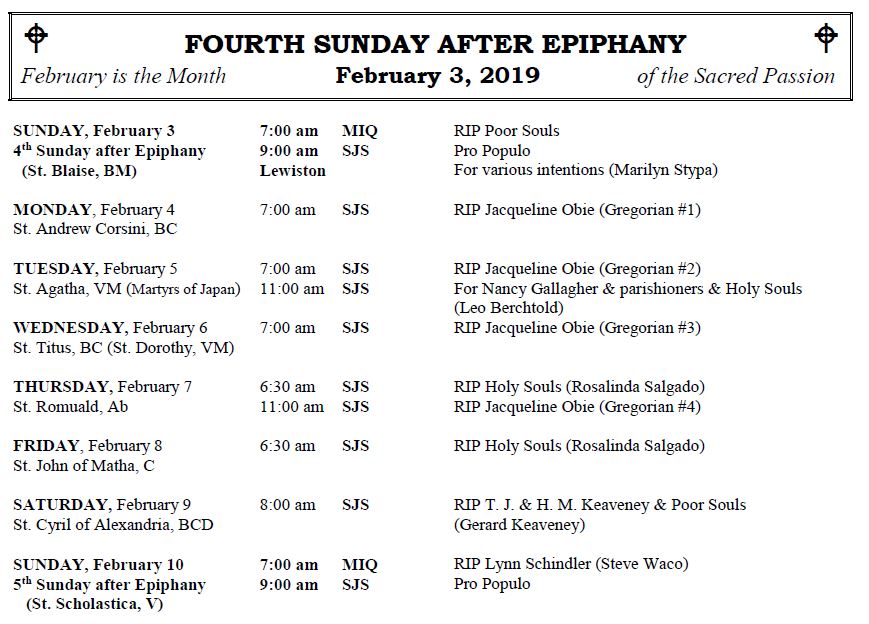 MASSES THIS WEEK: