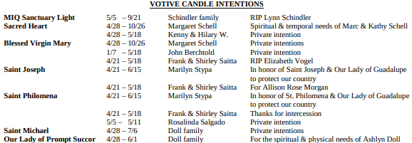 VOTIVE CANDLE INTENTIONS: