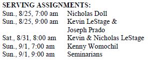 Bulletin for August 25, 2019