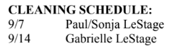 CLEANING SCHEDULE: