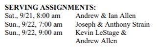 Bulletin for September 15, 2019