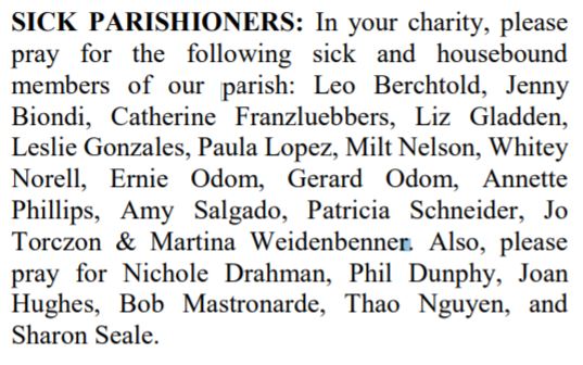 SICK PARISHIONERS:
