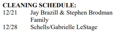 CLEANING SCHEDULE: