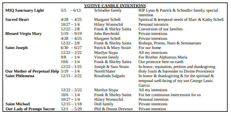 VOTIVE CANDLE INTENTIONS: