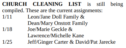 • Bulletin for January 11th, 2026