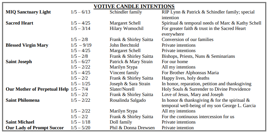VOTIVE CANDLE INTENTIONS: