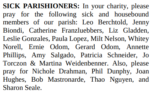 SICK PARISHIONERS:
