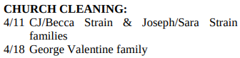 CHURCH CLEANING SCHEDULE: