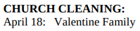 CHURCH CLEANING SCHEDULE: