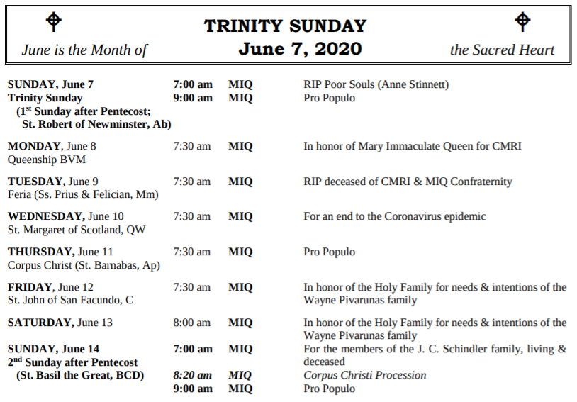 MASSES THIS WEEK: