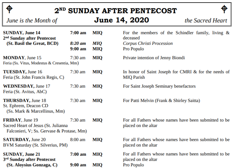 MASSES THIS WEEK: