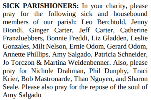 SICK PARISHIONERS: