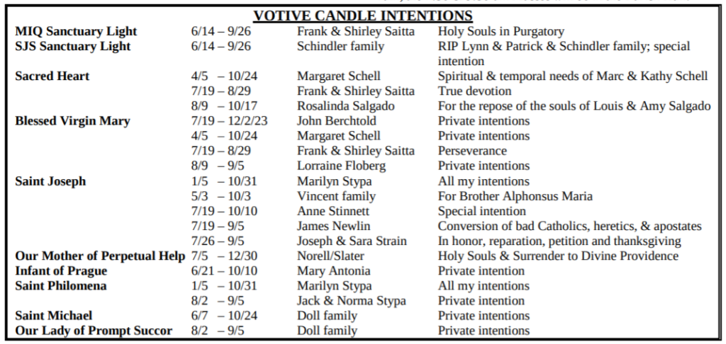 VOTIVE CANDLE INTENTIONS:
