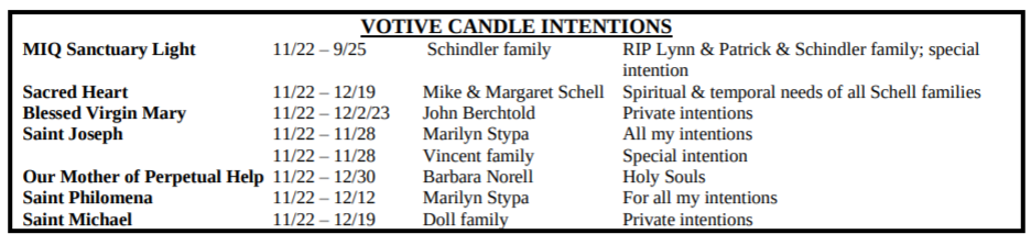 VOTIVE CANDLE INTENTIONS: