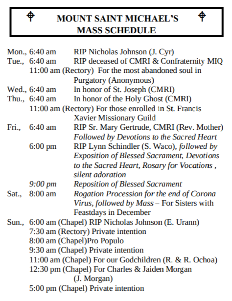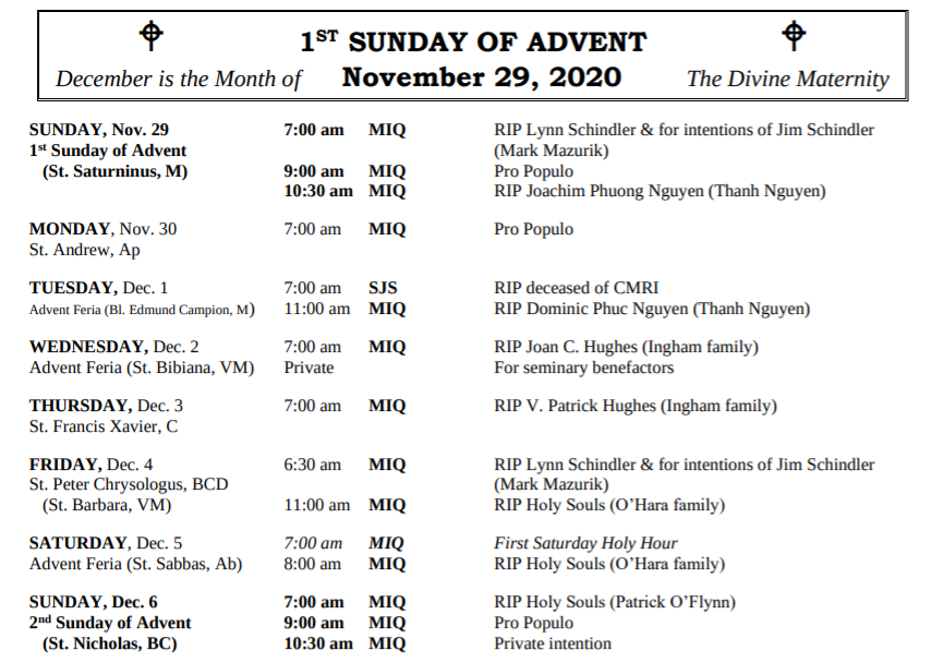 MASSES THIS WEEK: