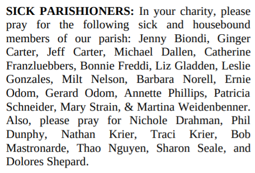 SICK PARISHIONERS: