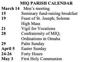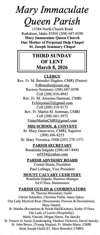 times: Rosary at 4:30 pm in the church, followed