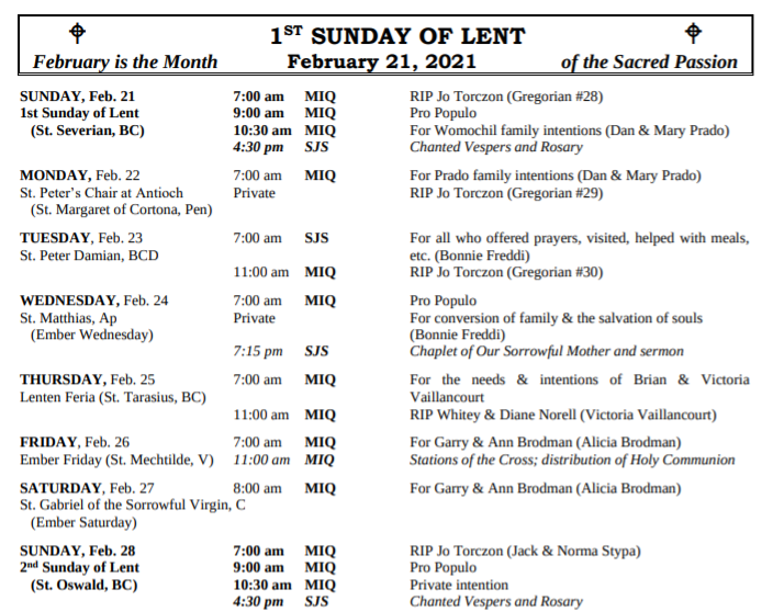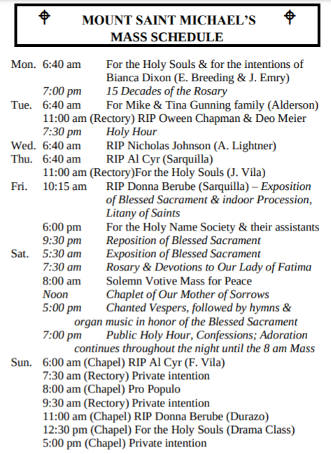 MASSES THIS WEEK: