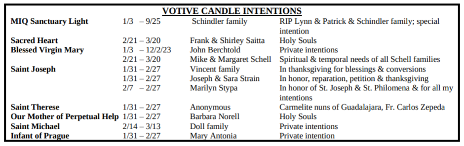 VOTIVE CANDLE INTENTIONS: