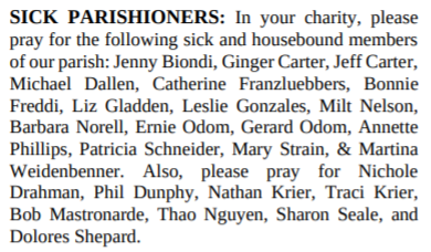 SICK PARISHIONERS: