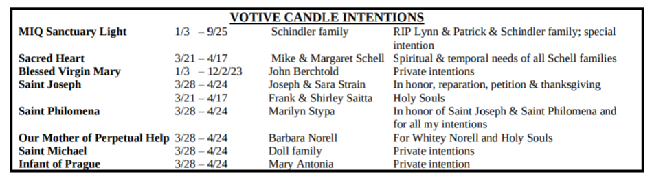 VOTIVE CANDLE INTENTIONS: