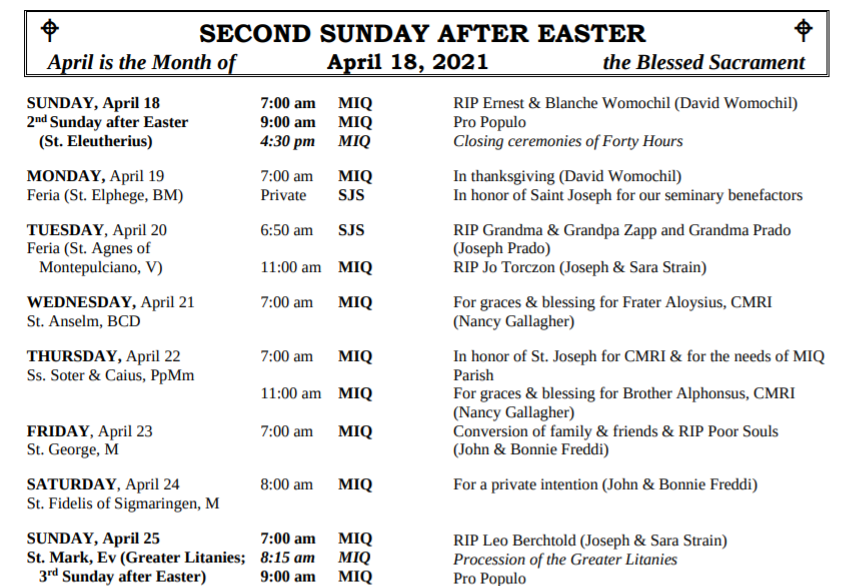 ➢ Customary stipend is $25. (Checks payable to Marian Fathers.)