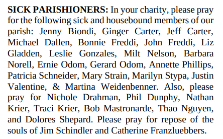 SICK PARISHIONERS: