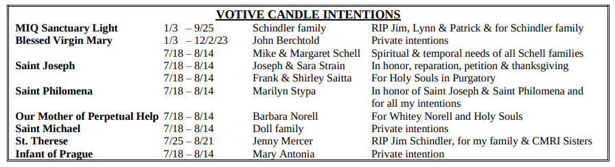 VOTIVE CANDLE INTENTIONS: