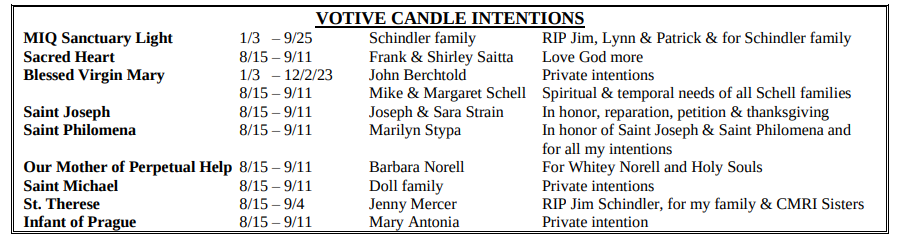 VOTIVE CANDLE INTENTIONS: