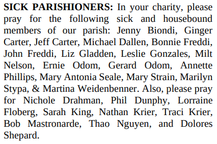 SICK PARISHIONERS: