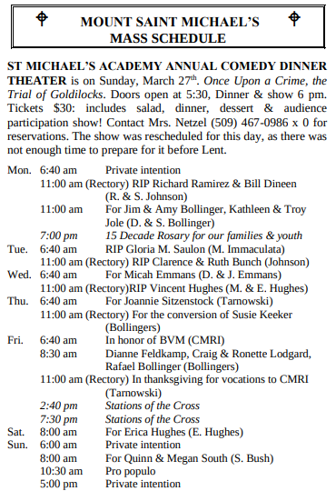 Ⓒ2017-2023 Mary Immaculate Queen Parish | 15384 North Church Road, Rathdrum, ID 83858