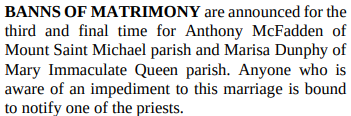 BANNS OF MATRIMONY: