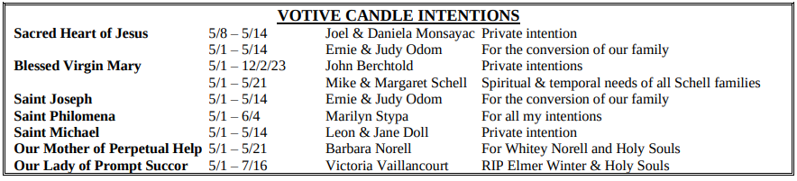 VOTIVE CANDLE INTENTIONS: