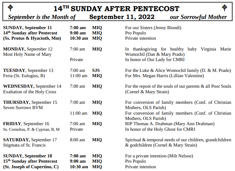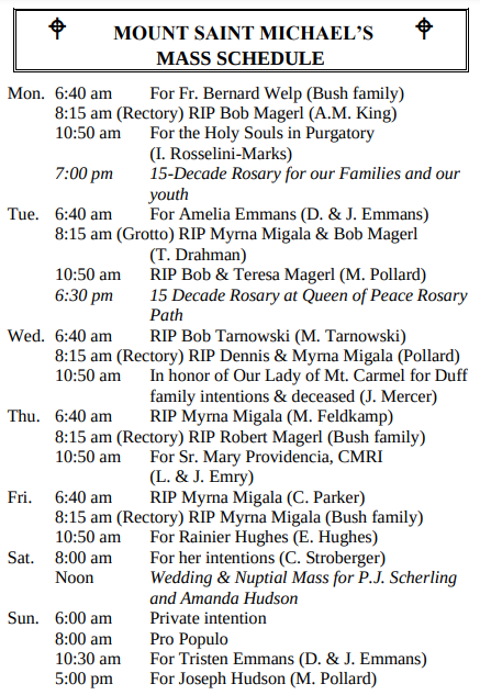 MASSES THIS WEEK: