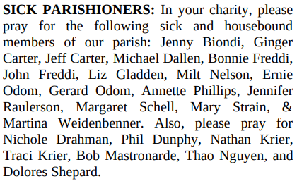 SICK PARISHIONERS:
