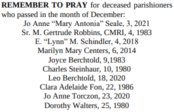REMEMBER TO PRAY FOR OUR DECEASED: