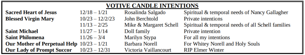 VOTIVE CANDLE INTENTIONS: