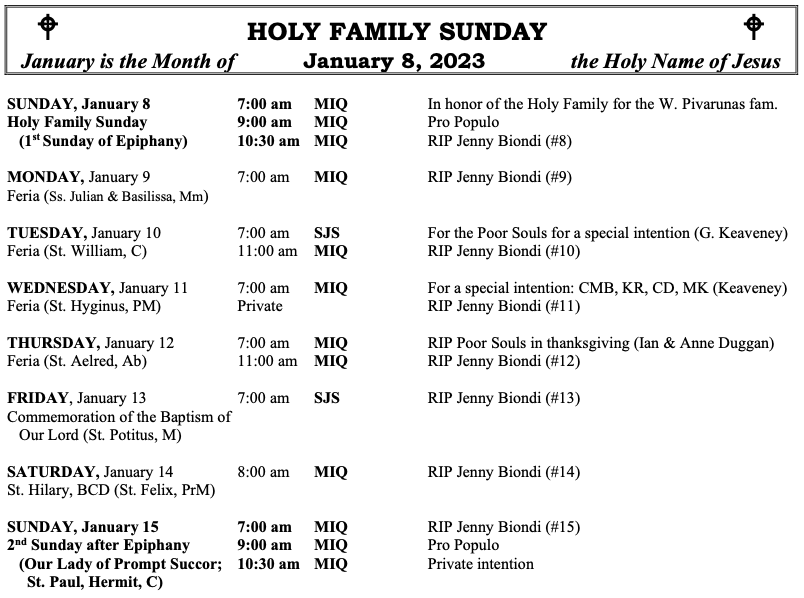 MASSES THIS WEEK