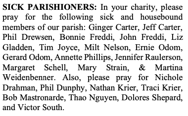 SICK PARISHIONERS