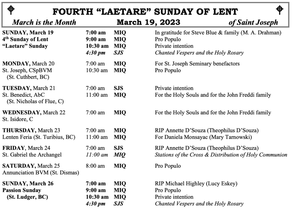 MOUNT SAINT MICHAEL’S MASS SCHEDULE & ANNOUNCEMENT