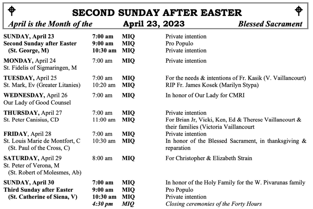 MOUNT SAINT MICHAEL’S MASS SCHEDULE